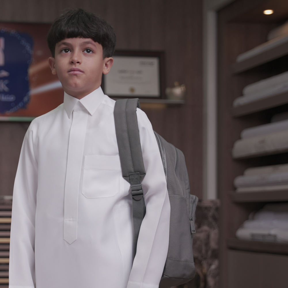 ثوب أطفال بأدق التفاصيل وأجود أنواع الأقمشة يستخدم في تفصيل الثياب الجاهزة اقمشة ( سميراميس-مربعات (اكسفورد)- سادة خفيف- سادة ربع واقف)